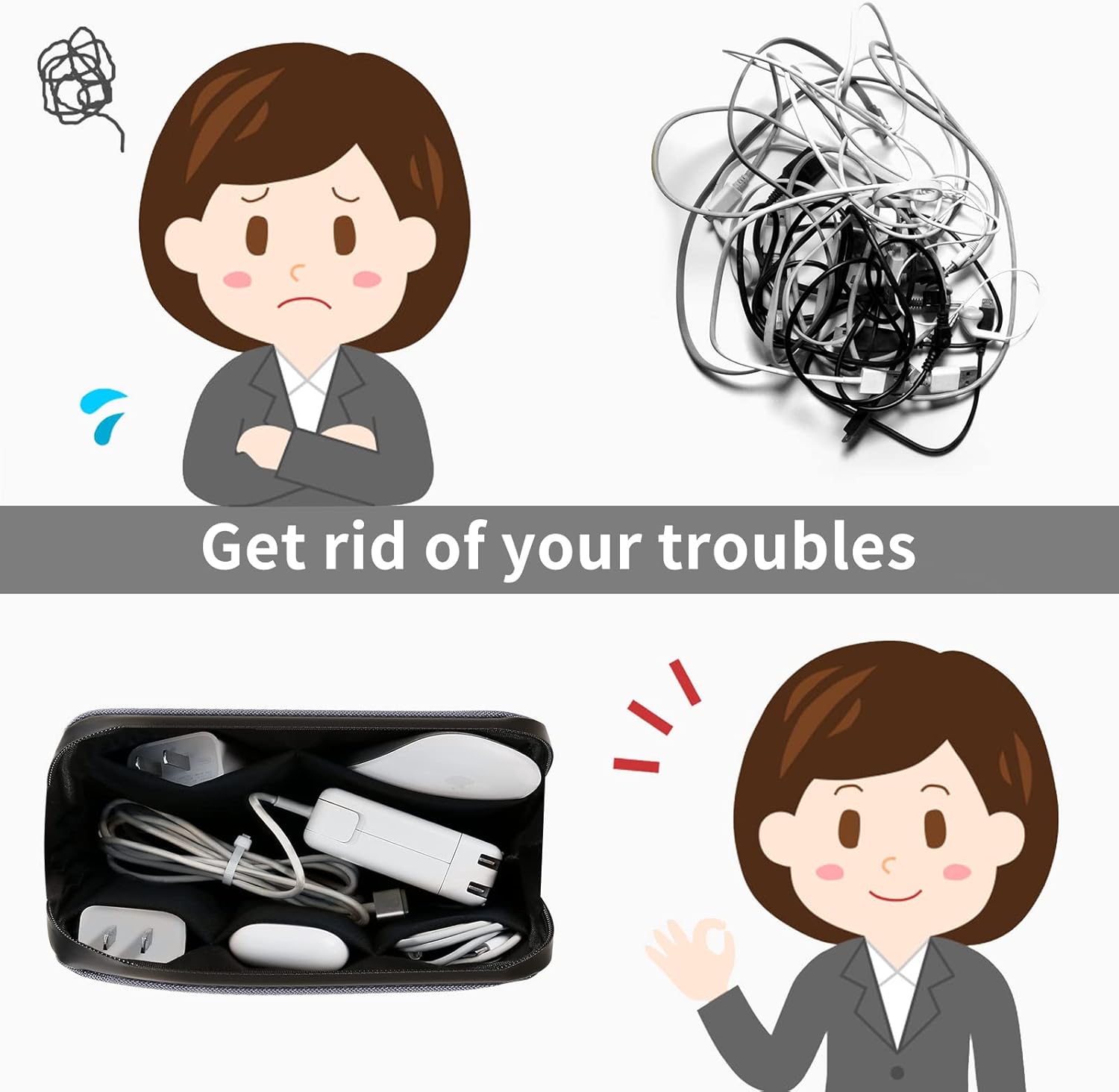 Water-Resistant Fabric with Smooth Zipper Design: Crafted from premium water-resistant polyester, this electronics organizer travel case helps shield your tech gear from light splashes and moisture. Reinforced seams and smooth zippers ensure durability and secure closure. (This cord organizer bag is not fully waterproof or submersible.)