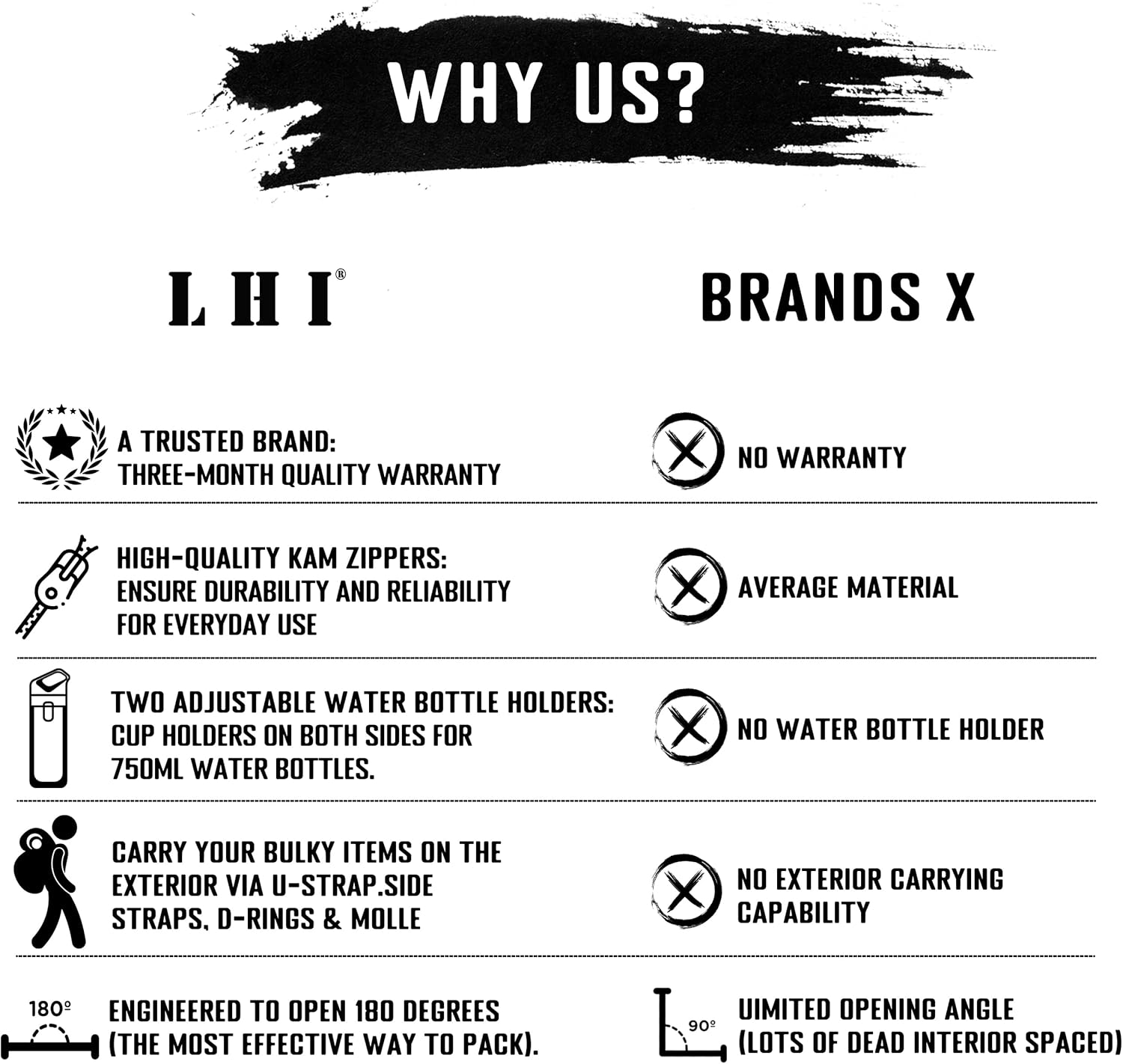 LHI Military Tactical Backpack for Men and Women 45L Army 3 Days Assault Pack Bag Large Rucksack with Molle System – Black