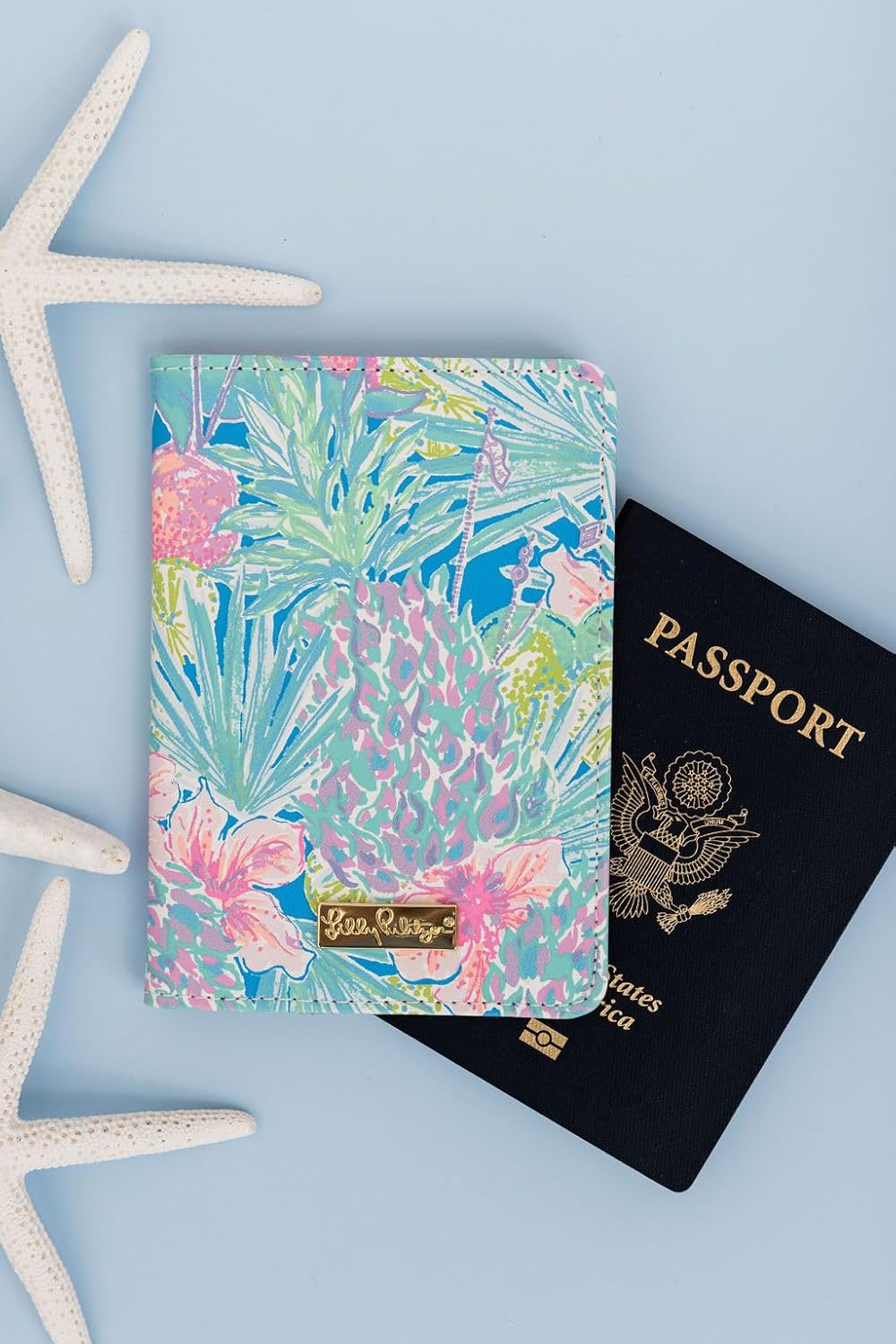 Lilly Pulitzer Vegan Leather Passport Holder, Cute Passport Cover, Travel Wallet with Credit Card Slots, Swizzle In