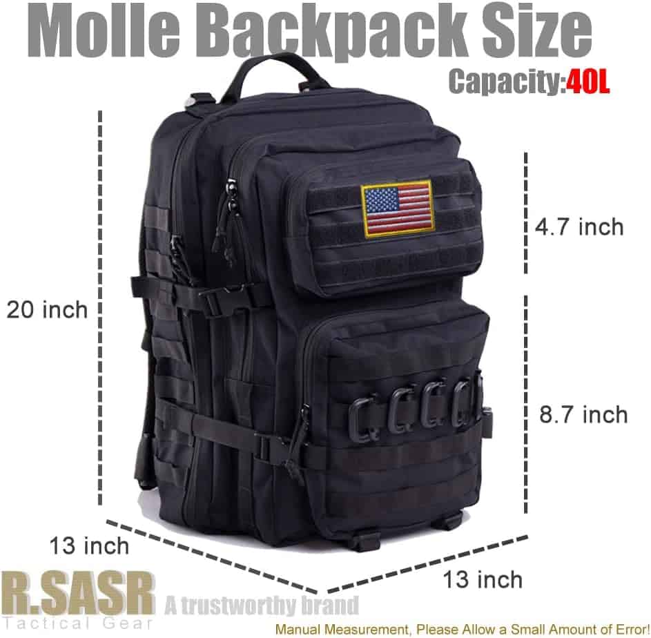 This Military Tactical Backpack is Equipped with 10 D-Rings to Make it Easy for you to Hang the Accessories of the Backpack. Tactical Backpack Size Appro: 13inch x 20inch x 13inch Dimensions and Appropriately Sized 40L Capacity, This Pack has Room for all of Your Essential Gear.