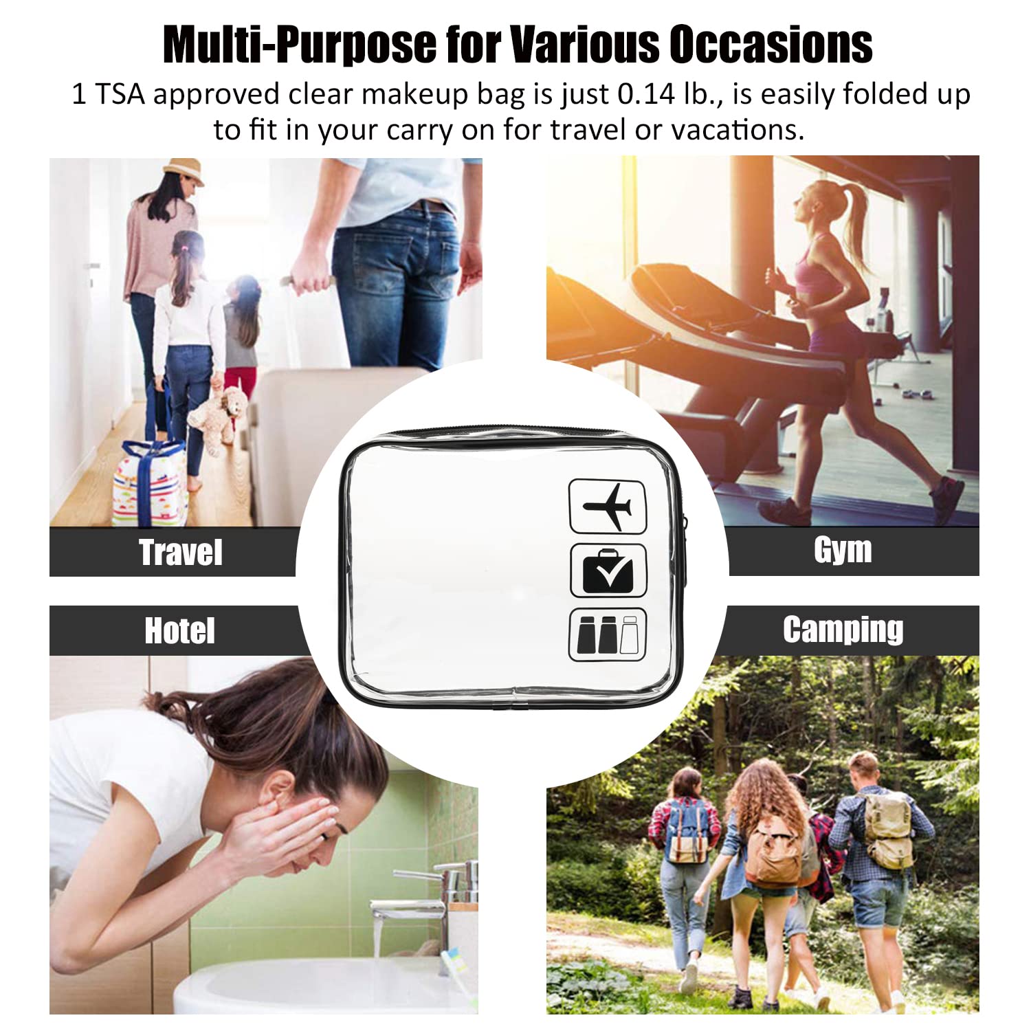 【TSA Approved】The 7.7 x 5.9 x 2.5 inch clear toiletry bag strictly follow 3-1-1 liquids rule for carry-on bag of all airlines, so you can easily and quickly pass through airport security.