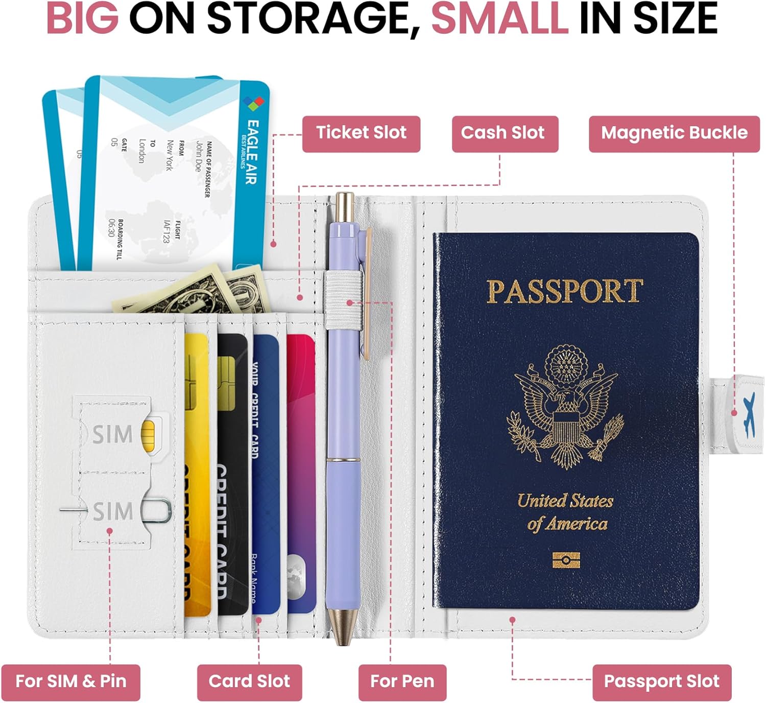 Instant Access & Magnetic Closure: Access your travel essentials in a snap. Our passport holder features a smooth magnetic closure for quick entry and secure storage – no more fumbling with zippers or snaps. Designed for effortless travel.