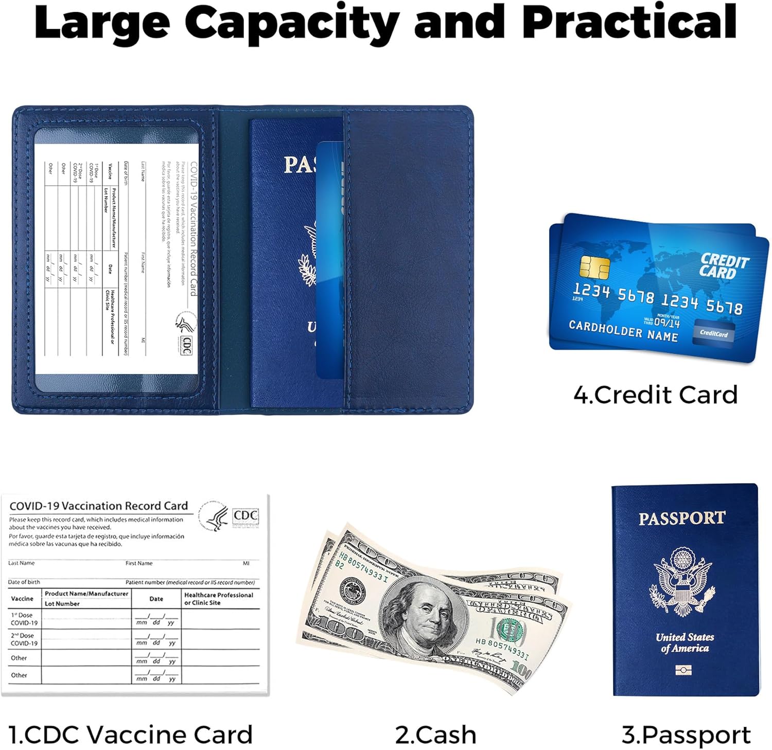 ✅ 【Passport Cover Travel Must Have】- Combine style and security with this passport, This passport holder 2 pockets, which a clear plastic slot for a CDC vaccination card is for vaccination card, photos or ID card, and another for the passport,The extra space can also be used for credit cards and business cards.is best travel accessories.