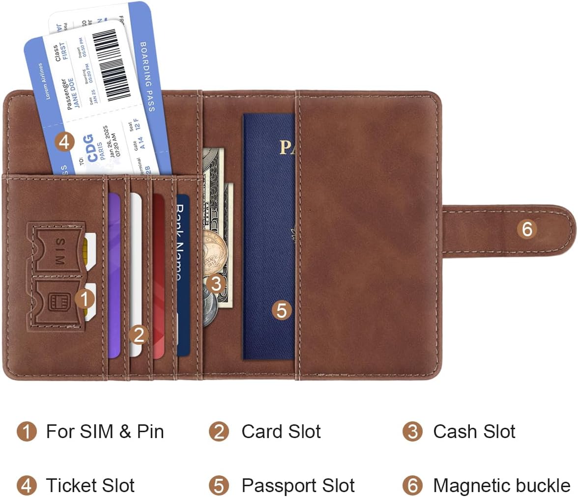 ★【Stucture and High-Quality Materials】Have 4 card slots,2 passport or cash slots,1 boarding pass slot, 2 SIM card slots .Measuring 5.9*4.25*0.75 inches, It is easy to carry travel documents around. Made from premium leather,offering a soft and comfortable touch.