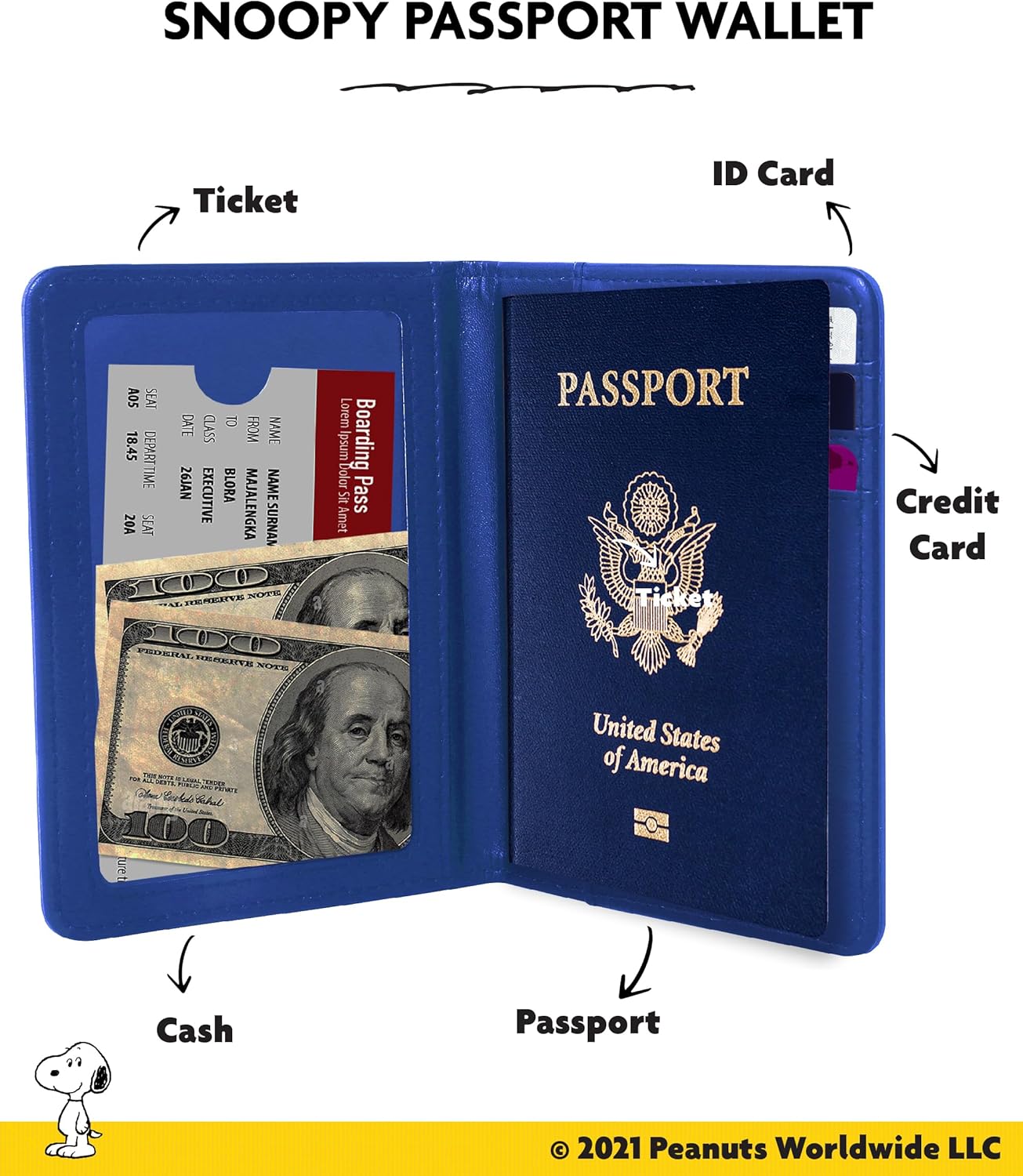 Sturdy Exterior: Peanuts travel passport holder is crafted from polyurethane for durability